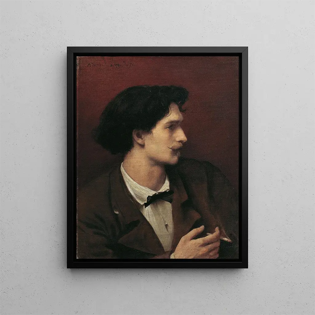 Anselm Feuerbach, figura principal de la pintura alemana del siglo XIX, supo marcar su tiempo con un enfoque innovador y personal del arte. Formado en la Academia de Múnich, fue influenciado por maestros como Delacroix e Ingres, pero desarrolló un estilo propio que combina el clasicismo con elementos contemporáneos. Feuerbach también es reconocido por su capacidad para capturar las nuances del alma humana, un rasgo que se refleja en la Autorretrato con cigarrillo. Su obra no solo inspiró a sus contemporáneos, sino que continúa influyendo