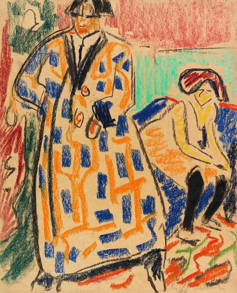 Ernst Ludwig Kirchner, nacido en 1880 en Dresde, es uno de los fundadores del grupo Die Brücke, que jugó un papel determinante en la emergencia del expresionismo en Alemania. Su trabajo, marcado por una voluntad de romper con las convenciones, ha influenciado a numerosos artistas contemporáneos y futuros. Kirchner se inspira en la vida urbana, los paisajes y las figuras humanas, explorando las tensiones entre el individuo y la sociedad. Su compromiso con una visión subjetiva de la realidad abrió camino a movimientos artísticos posteriores, como el surrealismo y la impresión artística.