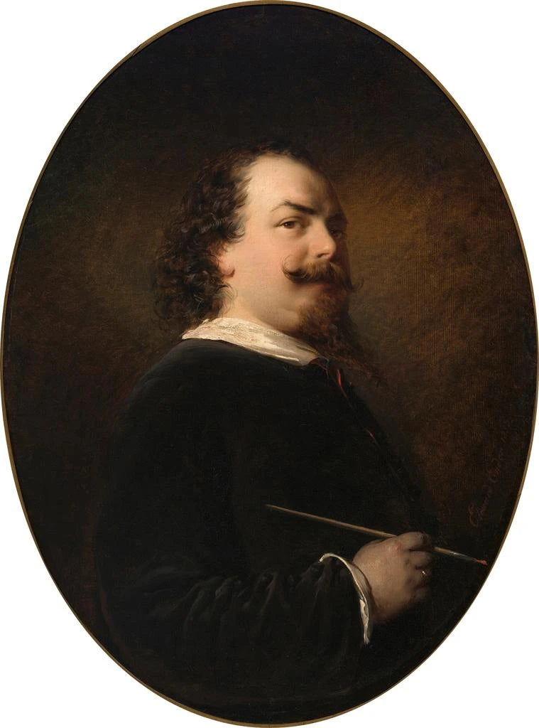 Eduard Ender, nacido en 1822 en Viena, es un pintor cuya obra ha sido profundamente influenciada por el movimiento romántico. Formado en un entorno artístico rico, supo desarrollar un estilo que combina tradición e innovación. Ender fue un observador atento de su tiempo, y sus creaciones, especialmente este autorretrato, reflejan las preocupaciones de su época, integrando además elementos de la pintura clásica. Su influencia trasciende su propia producción artística, inspirando a numerosos artistas contemporáneos que vieron en él un modelo de pasión y devoción al arte. Al explorar el mundo interior de sus sujetos, Ender abrió