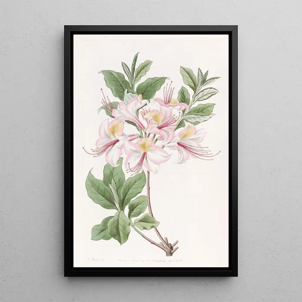 Sydenham Edwards, figura emblemática de principios del siglo XIX, dejó su huella en la historia del arte botánico por su enfoque innovador. Su pasión por la botánica lo llevó a crear obras que combinan rigor científico y sensibilidad artística. Edwards supo capturar la esencia de las plantas con una precisión notable, influyendo en muchos artistas de su época. La impresión artística de L'Azalée Blush Highclere ilustra perfectamente su talento, ofreciendo una visión poética y fiel de la flora, mientras celebra la belleza natural.