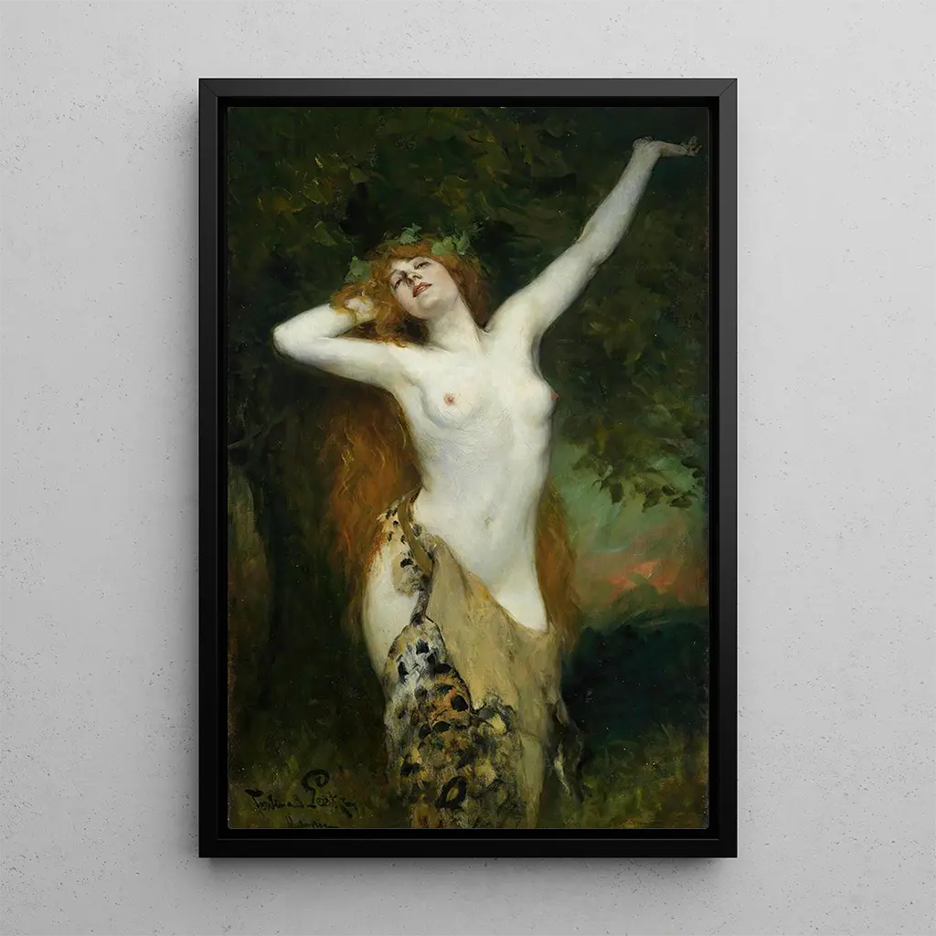 Ferdinand Leeke, activo a finales del siglo XIX, suele asociarse con el movimiento simbolista, que buscaba expresar ideas y emociones a través de imágenes evocadoras. Influenciado por los temas de la mitología y la naturaleza, Leeke supo crear obras que capturan el espíritu de su tiempo. Bacchante es un ejemplo perfecto de su estilo, combinando una técnica refinada con temas cargados de simbolismo. Sus obras, a menudo impregnadas de misterio y sensualidad, testimonian la importancia de la mitología en el arte de esa época.