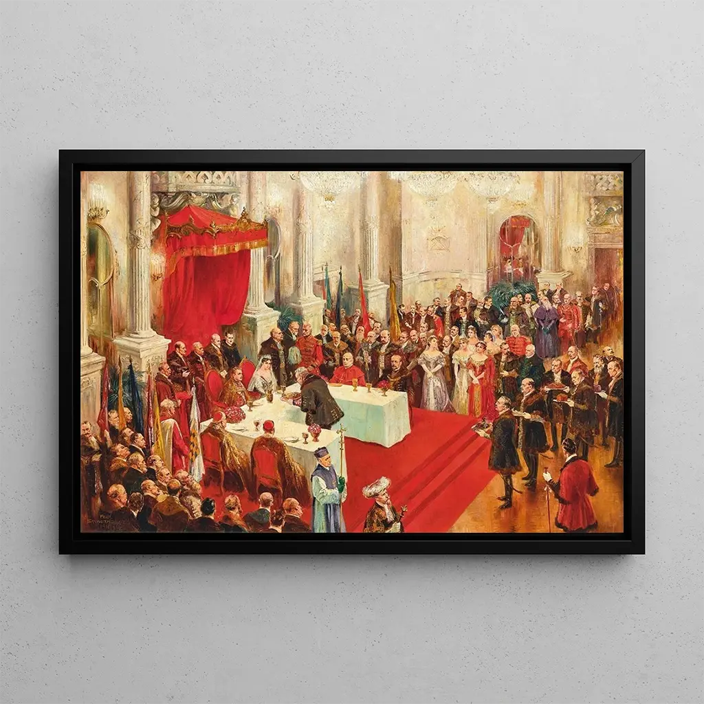 La impresión artística del "Banquet de coronación" es una pieza decorativa que sabrá embellecer cualquier espacio, ya sea un salón, una oficina o un dormitorio. Su calidad de impresión y su fidelidad a los detalles originales la convierten en una elección ideal para los amantes del arte y los apasionados de la historia. Con su atractivo estético indiscutible, este cuadro aportará un toque de elegancia y sofisticación a su interior, al mismo tiempo que suscitará conversaciones sobre las tradiciones reales y los eventos destacados de la historia.
