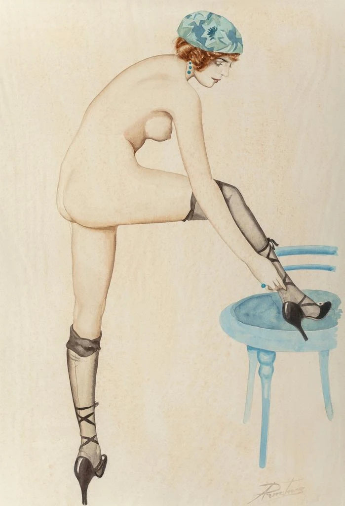 Rolf Armstrong es un artista estadounidense nacido en 1889, reconocido por sus ilustraciones glamour y sus retratos de mujeres. Activo principalmente en los años 1920 a 1940, supo imponerse en el medio artístico gracias a su estilo único, que combina realismo y elementos del Art déco. Influenciado por los movimientos artísticos de su época, Armstrong logró captar el espíritu de los años locos, donde la moda y la elegancia estaban en su apogeo. Sus obras, incluyendo "Bas francés", testimonian su talento excepcional y su impacto duradero en el arte de la ilustración.