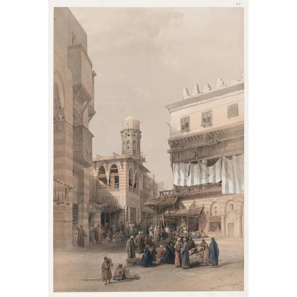 David Roberts, pintor escocés del siglo XIX, es reconocido por sus obras que ilustran los paisajes y las culturas orientales. Influenciado por el movimiento romántico, viajó por Oriente Medio, documentando sus descubrimientos con una precisión notable. Sus obras, como "Bazar de los caldereros El Cairo", reflejan su interés por el orientalismo, un estilo artístico que surgió en esa época, combinando fascinación y exotismo. Roberts supo capturar la esencia de los lugares que visitó, ofreciendo así una visión valiosa de la vida cotidiana y las tradiciones de esas regiones, influyendo además en numerosos artistas contemporáneos.