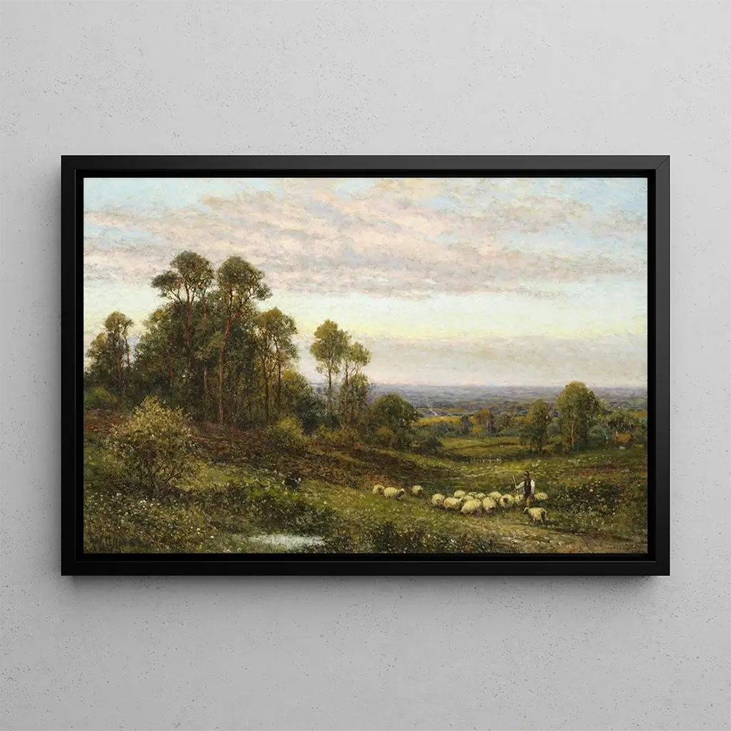 Alfred Augustus Glendening, un pintor británico del siglo XIX, es famoso por sus paisajes y escenas de la vida rural. Evolucionando en una época en la que la industrialización comenzaba a transformar el paisaje británico, Glendening eligió centrarse en la belleza atemporal del campo. Influenciado por el movimiento romántico, supo capturar momentos de calma y belleza natural, a menudo representando pastores y sus rebaños. Su estilo, caracterizado por pinceladas fluidas y una atención especial a los efectos de la luz, lo convirtió en un representante emblemático de la pintura de paisaje de su época, dejando un legado duradero en el arte pastoral.