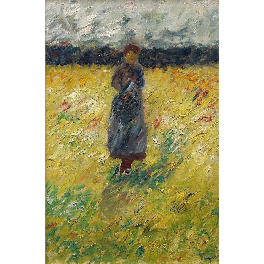 La impresión artística del cuadro Bergère de Carl Trägårdh captura un momento de tranquilidad y serenidad. La figura de la bergère, rodeada de paisajes bucólicos, evoca una sencillez y una belleza atemporal. Los colores suaves y pastel, combinados con pinceladas fluidas, crean una atmósfera pacífica que invita a la contemplación. La obra transmite calidez humana, como si la bergère pudiera animarse y compartir sus historias. Cada elemento, desde el rostro dulce de la protagonista hasta la naturaleza circundante, contribuye a una escena impregnada de poesía y nostalgia.