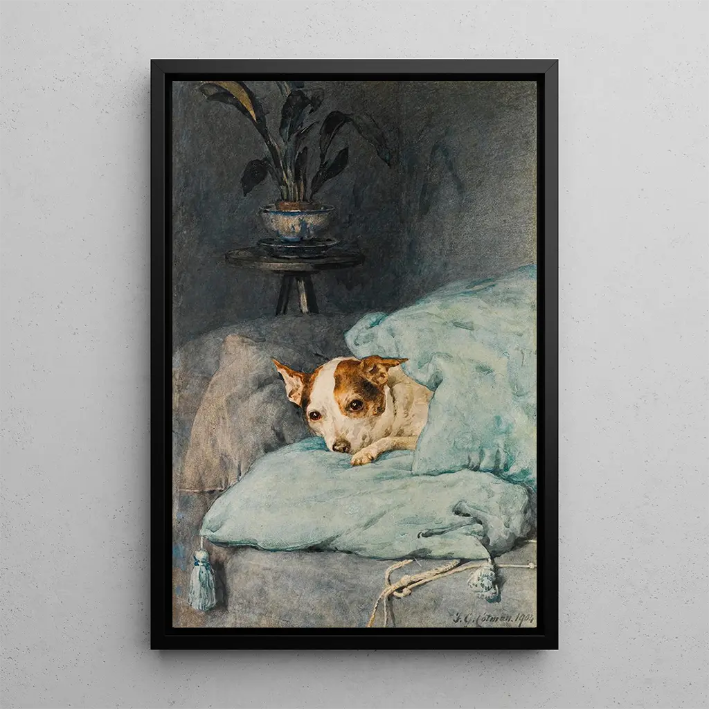 "En la búsqueda de una atmósfera acogedora" es una obra que evoca la suavidad de un momento pacífico, donde uno se encuentra protegido de las frías exteriores. Frederick George Cotman, con su dominio de los colores cálidos y las luces suaves, logra crear una atmósfera íntima, casi acogedora. Los personajes, envueltos en ropa cómoda, parecen saborear la calidez de un hogar, mientras que los tonos dorados y marrones de la impresión artística añaden una dimensión cálida y acogedora. Esta escena, impregnada de serenidad, invita a la contemplación y a la nostalgia de momentos pasados en familia.