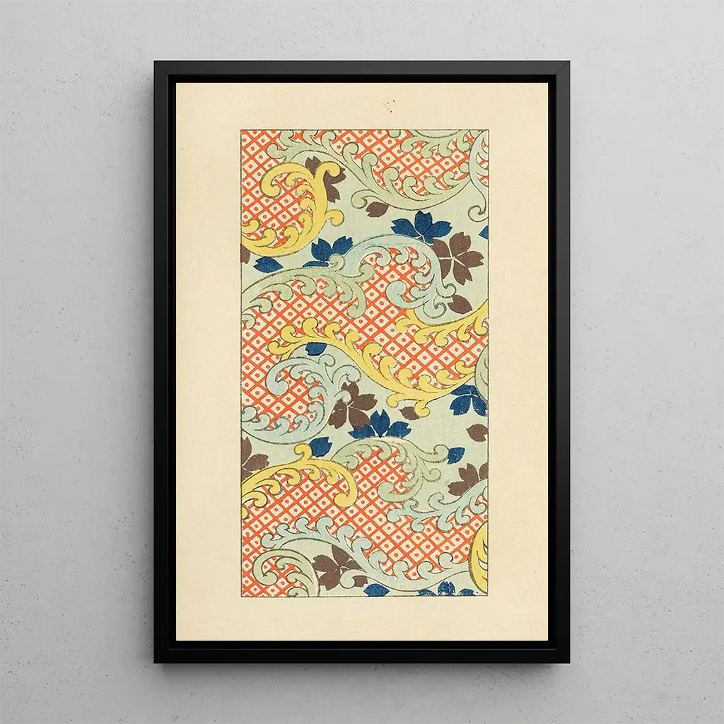 La impresión artística de Bijutsukai Pl105 es una obra cautivadora que evoca una armonía delicada entre los colores y los motivos. Las vibrantes tonalidades de azul, rojo y oro se combinan para crear una atmósfera a la vez relajante y dinámica. La técnica de pintura sobre seda, característica del arte japonés, permite que cada detalle brille con una claridad excepcional. Las formas fluidas y las líneas sinuosas invitan a una contemplación profunda, transportando al espectador a un universo donde la naturaleza y el arte se encuentran con elegancia.
