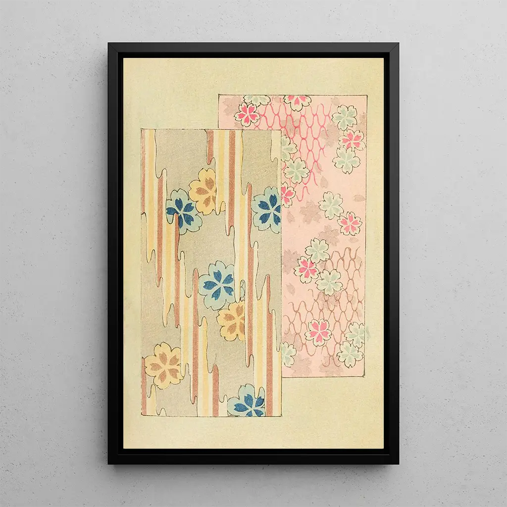 La impresión artística de Bijutsukai Pl106 es una obra que celebra la belleza fugaz de la naturaleza. Con sus delicados colores pastel y sus motivos florales, esta tela evoca una sensación de ligereza y dulzura. Los detalles minuciosos y la composición armoniosa invitan a una contemplación serena. Cada pétalo parece bailar bajo la brisa, creando una atmósfera poética que transporta al espectador a un jardín secreto. La técnica de pintura sobre seda, dominada por Furuya Korin, confiere a esta obra una luminosidad y una profundidad excepcionales.