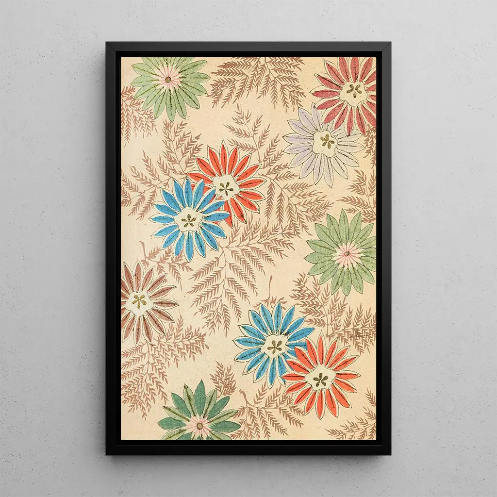 La impresión artística de Bijutsukai Pl143, también firmada por Furuya Korin, nos transporta a un jardín exuberante donde las flores florecen con gracia. Las delicadas tonalidades de rosa y verde se entrelazan, creando una composición visual relajante y fascinante. La técnica refinada del artista, combinando acuarela y tinta, da vida a cada pétalo, cada hoja, como si estuvieran animados por una energía propia. La atmósfera que emana de este lienzo es a la vez suave y dinámica, invitando al espectador a perderse en la belleza de la naturaleza, mientras evoca una cierta melancolía propia del arte japonés.