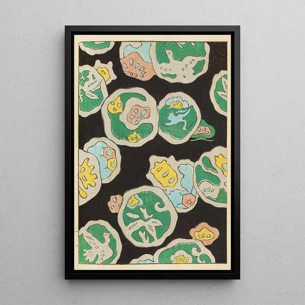 La impresión artística de Bijutsukai Pl220 es una verdadera oda a la naturaleza, donde los colores se entrelazan para formar una composición armoniosa. Furuya Korin, con su estilo distintivo, nos ofrece un cuadro donde cada elemento parece vivo, vibrante de energía y poesía. Los matices delicados de azul y verde evocan paisajes serenos, mientras que los motivos florales aportan un toque de ligereza y gracia. Esta obra invita a la contemplación, permitiendo al espectador evadirse en un mundo donde la belleza natural reina en su máximo esplendor.