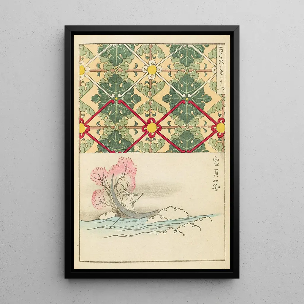 La impresión artística Bijutsukai Pl225 de Furuya Korin evoca una serenidad cautivadora, donde cada elemento parece bailar en perfecta armonía. Los colores suaves, combinando tonos de azul, verde y oro, crean una atmósfera relajante, casi meditativa. La técnica de la pintura, característica de la escuela Rimpa, se manifiesta mediante líneas fluidas y motivos estilizados que recuerdan la belleza efímera de la naturaleza. Este cuadro invita a la contemplación, permitiendo al espectador sumergirse en un universo donde la belleza y el equilibrio reinan en plenitud.