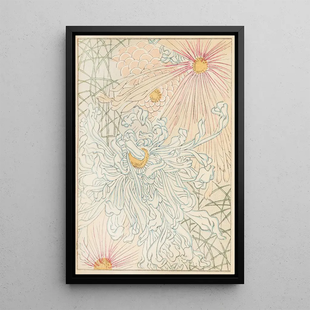 La impresión artística de Bijutsukai Pl27 de Furuya Korin es una obra que capta inmediatamente la atención por su paleta vibrante y sus motivos delicados. Los colores llamativos se mezclan armoniosamente, creando una atmósfera a la vez alegre y relajante. La técnica del artista, que utiliza líneas fluidas y formas estilizadas, evoca un mundo donde la naturaleza y el arte se encuentran en una danza poética. Cada detalle parece contar una historia, invitando al espectador a sumergirse en un universo rico en simbolismo y emoción.