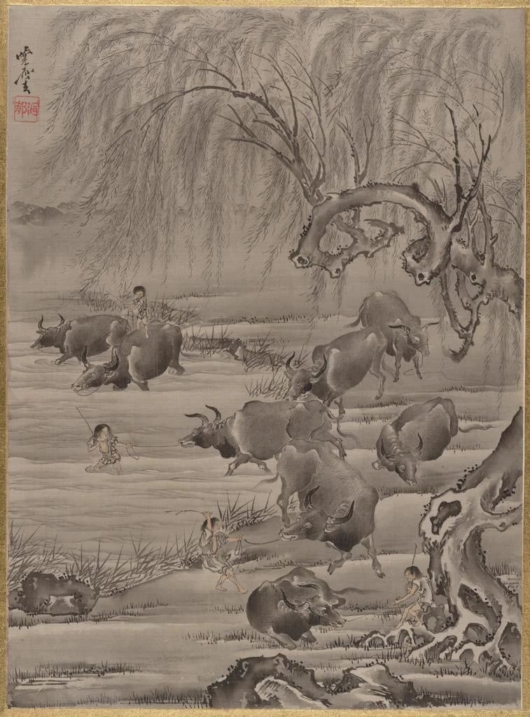 Búfalo y pastor - Kawanabe Kyōsai
