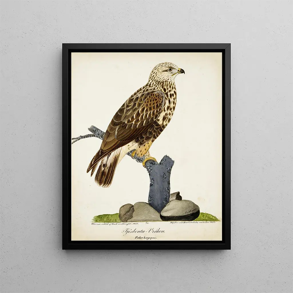 "Reproduction Buse pattue" se distingue por su realismo impactante y su paleta de colores sutil. Ferdinand von Wright sobresale en el arte de la representación ornitológica, y esta obra es un ejemplo perfecto. Cada pluma del ave está representada con una precisión impresionante, mientras que los matices de marrón y crema evocan la textura delicada de su plumaje. La elección de un fondo natural, que evoca los paisajes escandinavos, permite resaltar la majestuosidad de la buse. Este cuadro no se limita a representar un ave; cuenta una historia, ese instante congelado en el tiempo, donde la belleza de la naturaleza alcanza su apogeo. La composición equilibrada y la mirada penetrante del ave crean una conexión inmediata con el espectador, invitándolo a reflexionar sobre la vida salvaje y sus misterios.