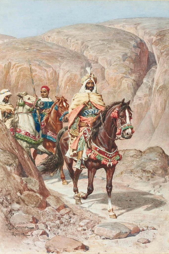 Francesco Coleman, activo en el siglo XIX, es reconocido por sus representaciones impactantes de la naturaleza, a menudo inspiradas por los grandes maestros del romanticismo. Su carrera se extiende a lo largo de varias décadas, durante las cuales ha sabido evolucionar manteniendo su amor por los paisajes grandiosos. Influenciado por artistas como Caspar David Friedrich, Coleman ha sabido integrar elementos de misterio y sublime en sus obras. Su trabajo testimonia una época en la que el hombre buscaba reconectarse con la naturaleza, una temática que aún resuena hoy en día. Las "Cavaliers sur un passage rocheux" ilustran perfectamente esta búsqueda de armonía entre el hombre y su entorno.