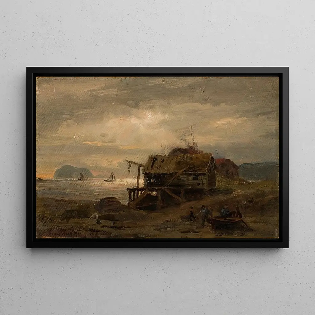 Nacido en 1838, Amaldus Nielsen es un pintor danés reconocido por sus paisajes marinos y sus escenas de la vida cotidiana. Influenciado por el movimiento romántico, supo capturar la belleza natural de Escandinavia a través de sus obras. Nielsen vivió en una época en la que el arte escandinavo comenzaba a hacerse un nombre en la escena internacional, y sus cuadros, como "Cabanas de pesca en Kinn", reflejan esa evolución. Su estilo, caracterizado por una atención minuciosa a los detalles y una paleta de colores delicados, le permitió destacarse entre sus contemporáneos y dejar un legado duradero en el arte danés.