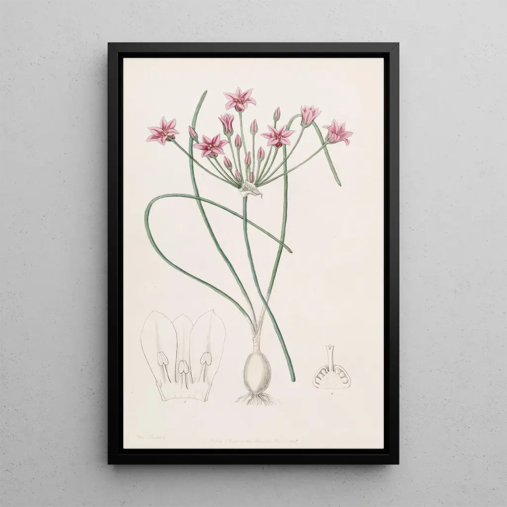 Caloscord con hojas de nérine: una delicada armonía botánica La impresión artística "Caloscord con hojas de nérine" de Sydenham Edwards presenta una composición floral cautivadora, donde las hojas verdes se entrelazan con matices de rosa y blanco. La técnica de acuarela, utilizada con delicadeza, confiere a la obra una ligereza y una transparencia que evocan la suavidad de un jardín en plena floración. La atmósfera general invita a la contemplación, cada detalle minuciosamente representado que testimonia un amor por la naturaleza y su belleza efímera. Las formas orgánicas y los colores pastel crean una armonía visual que transporta al espectador a un universo botánico relajante. Sydenham Edwards: un pionero de la ilustración botánica Sydenham Edwards, activo a principios del siglo XIX, es reconocido por sus contribuciones significativas a la ilustración botánica. Formado en la escuela de la naturaleza, supo capturar la diversidad de las plantas con una precisión notable. Sus obras, a menudo publicadas en obras de referencia, han desempeñado un papel crucial en la documentación de las especies vegetales de su época. Edwards fue influenciado por los descubrimientos botánicos de su tiempo y colaboró con botánicos renombrados, lo que enriqueció su enfoque artístico. Su estilo, combinando realismo y sensibilidad, marcó una época en la que la ilustración científica y el arte se unían. Una adquisición decorativa con múltiples ventajas La impresión artística del "Caloscord con hojas de nérine" es una pieza decorativa que encaja perfectamente en diversos espacios, ya sea un salón, una oficina o un dormitorio. La calidad de impresión garantiza una fidelidad a los detalles originales, permitiendo disfrutar de la estética refinada de la obra mientras aporta un toque de naturaleza a su interior. La obra, con sus colores suaves y su ambiente sereno, crea una atmósfera acogedora y relajante. Al elegir esta obra, opta por un elemento decorativo que no solo embellece su espacio, sino que también evoca el amor por la botánica y el arte de vivir.