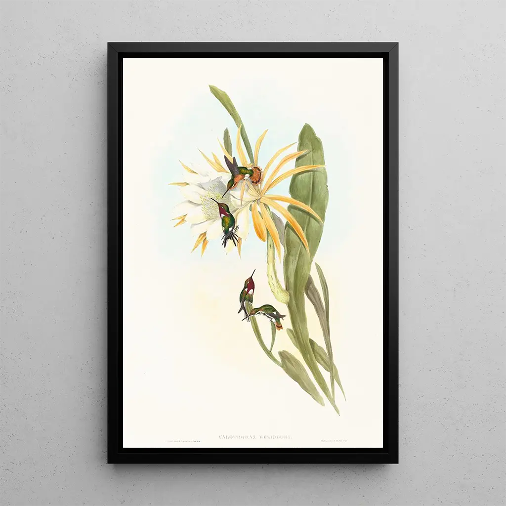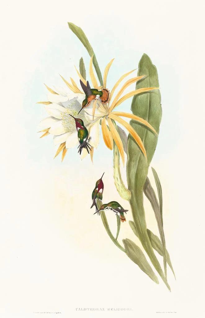 John Gould, famoso por sus ilustraciones ornitológicas del siglo XIX, marcó su época con su enfoque único del arte y de la ciencia. Al viajar por el mundo, supo capturar la diversidad aviar en sus obras, combinando precisión científica y estética. Gould fue influenciado por los descubrimientos de su tiempo y contribuyó a la popularización de la ornitología. Sus obras, como la de Calothorax heliodori, se han convertido en referencias para naturalistas y artistas, testimoniando su talento excepcional y su dedicación a la naturaleza.