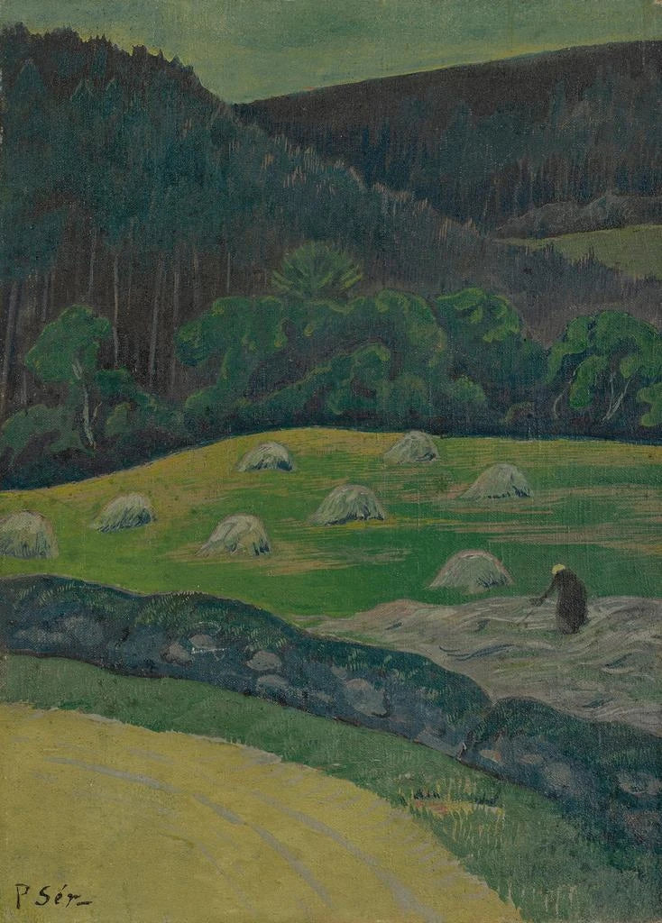 Paul Sérusier, nacido en 1864, fue un artista francés que jugó un papel crucial en la aparición del movimiento nabi a finales del siglo XIX. Influenciado por maestros como Gauguin y los impresionistas, Sérusier buscó expresar emociones a través del color y la forma. "Paysanne en el campo" se inscribe en un período donde los artistas buscaban alejarse del realismo para explorar representaciones más simbólicas y personales. Como miembro fundador de los nabis, Sérusier abrió camino a un nuevo enfoque de la pintura, donde la intuición y la subjetividad tomaban el control sobre la representación fiel de la realidad.