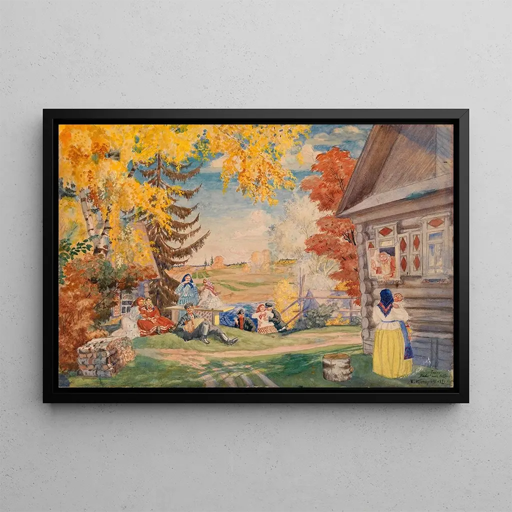 Boris Kustodiev, activo a principios del siglo XX, es uno de los artistas más importantes de la escena artística rusa. Su estilo, influenciado por el realismo y el simbolismo, captura la esencia de la cultura y de la vida rusa. Kustodiev ha explorado a menudo temas relacionados con la vida rural, poniendo en luz las tradiciones y las costumbres de su país. La impresión artística de Paysannes Neverov se inscribe en esta línea, testimoniando el amor del artista por su pueblo y su tierra. Su obra es un espejo de la sociedad rusa de su época, rica en emociones y en colores.