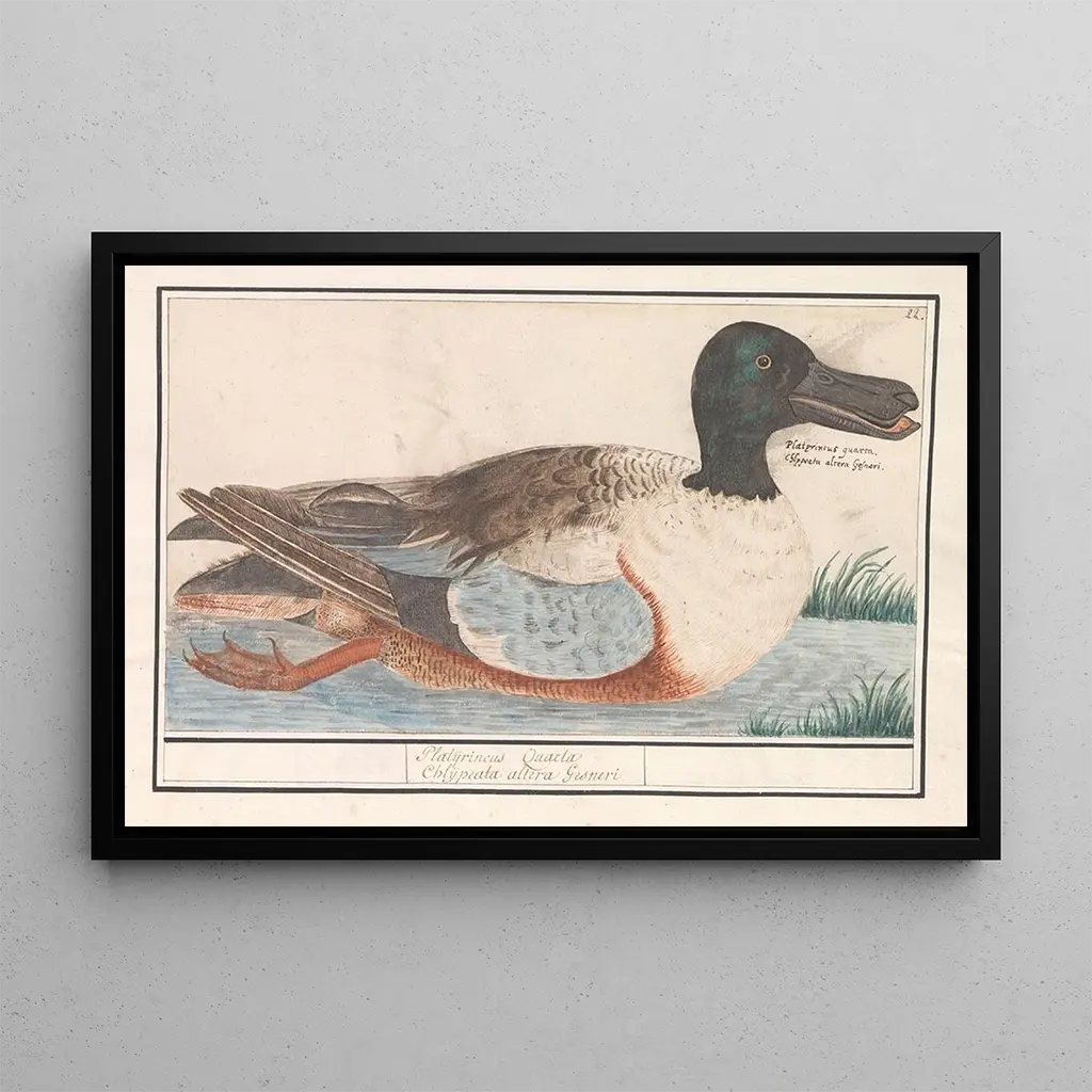 Canard souchet Anas clypeata : una elegancia natural en la orilla del agua La impresión artística del "Canard souchet Anas clypeata" de Anselmus Botius de Boodt es un verdadero homenaje a la belleza ornitológica. Este cuadro, rico en detalles, captura la elegancia de este pato con plumaje distintivo. Los tonos delicados de verde y marrón se mezclan armoniosamente, mientras que el fondo acuático evoca un entorno natural tranquilo. La precisión de los rasgos y la finura de las texturas crean una atmósfera viva, casi palpable, invitando al espectador a admirar la gracia de este ave. Esta obra es un ejemplo perfecto de cómo el arte puede celebrar la fauna y la flora. Anselmus Botius de Boodt : una mirada a la naturaleza en el siglo XVII Anselmus Botius de Boodt, artista flamenco del siglo XVII, es reconocido por sus representaciones minuciosas de animales y plantas. Su trabajo se inscribe en una tradición naturalista, donde la observación precisa de la naturaleza es primordial. Influenciado por los avances científicos de su época, supo combinar arte y ciencia, capturando la belleza de las especies con una rigurosidad notable. Sus obras, a menudo encargadas por coleccionistas, testimonian la importancia de la representación de la naturaleza en el arte del Renacimiento, y el "Canard souchet" es un ejemplo perfecto. Una adquisición decorativa con múltiples ventajas La impresión artística del "Canard souchet Anas clypeata" es una pieza decorativa que enriquecerá su interior, ya sea en una oficina, un salón o un dormitorio. La calidad de impresión asegura fidelidad en los colores y detalles de la obra original, aportando un toque de elegancia a su decoración. Este cuadro, con su ambiente natural, evoca la tranquilidad de los entornos acuáticos e invita a la contemplación. Al elegir esta tela, opta por una decoración refinada, celebrando la belleza de la fauna salvaje.