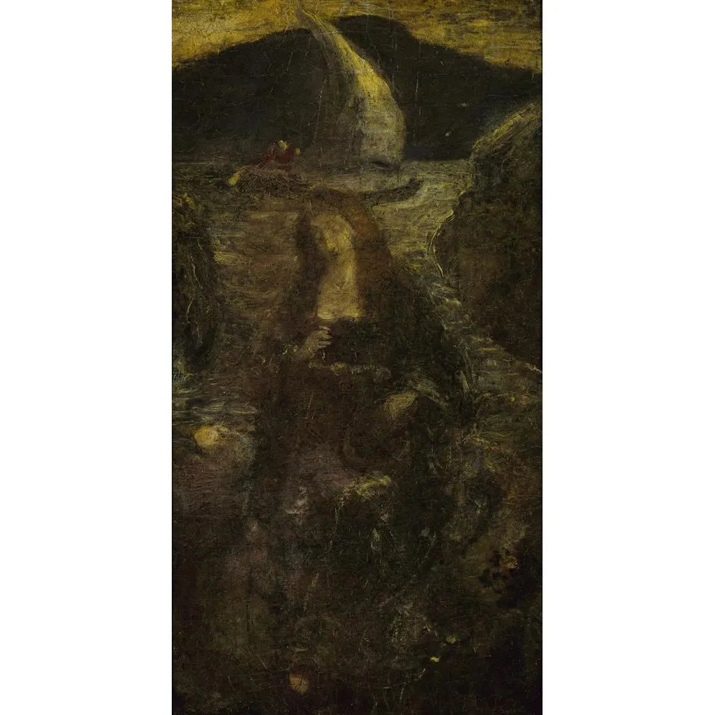Albert Pinkham Ryder, figura emblemática del romanticismo estadounidense, supo imponerse como un artista visionario a finales del siglo XIX. Sus obras, a menudo inspiradas por la literatura y la poesía, reflejan una sensibilidad única hacia temas universales como el amor, la muerte y la naturaleza. Ryder fue influenciado por artistas europeos, pero desarrolló un estilo distintivo, caracterizado por composiciones dramáticas y una paleta de colores rica. "Chanson passagère" se inscribe en esta tradición, ofreciendo una reflexión sobre la belleza fugaz de la existencia.