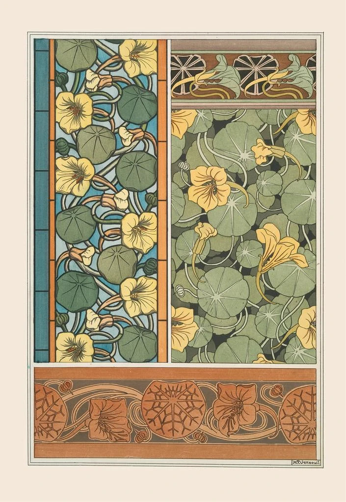 Maurice Pillard Verneuil, activo a principios del siglo XX, es reconocido por su papel en el movimiento del Art Nouveau. Su trabajo se distingue por un enfoque innovador de los motivos florales, integrando elementos decorativos que trascienden la simple representación. Influenciado por las corrientes artísticas de su tiempo, Verneuil supo combinar tradición y modernidad, creando obras que celebran la belleza de la naturaleza mientras se inscriben en una estética contemporánea. Su legado perdura, inspirando a numerosos artistas a explorar los temas florales con una sensibilidad renovada.