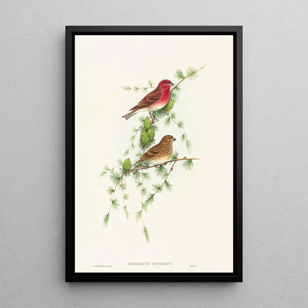 John Gould, naturalista e ilustrador británico del siglo XIX, es considerado uno de los más grandes ornitólogos de su tiempo. Su pasión por las aves lo llevó a explorar regiones remotas, donde recopiló especímenes y realizó ilustraciones de una precisión sin precedentes. Sus obras, incluyendo la impresión artística Carpodacus erythrinus, testimonian una época en la que la ciencia y el arte se unían para documentar la biodiversidad. Influenciado por los descubrimientos de Charles Darwin, Gould supo combinar rigor científico y sensibilidad artística, dejando un legado duradero en el campo de la ilustración zoológica.