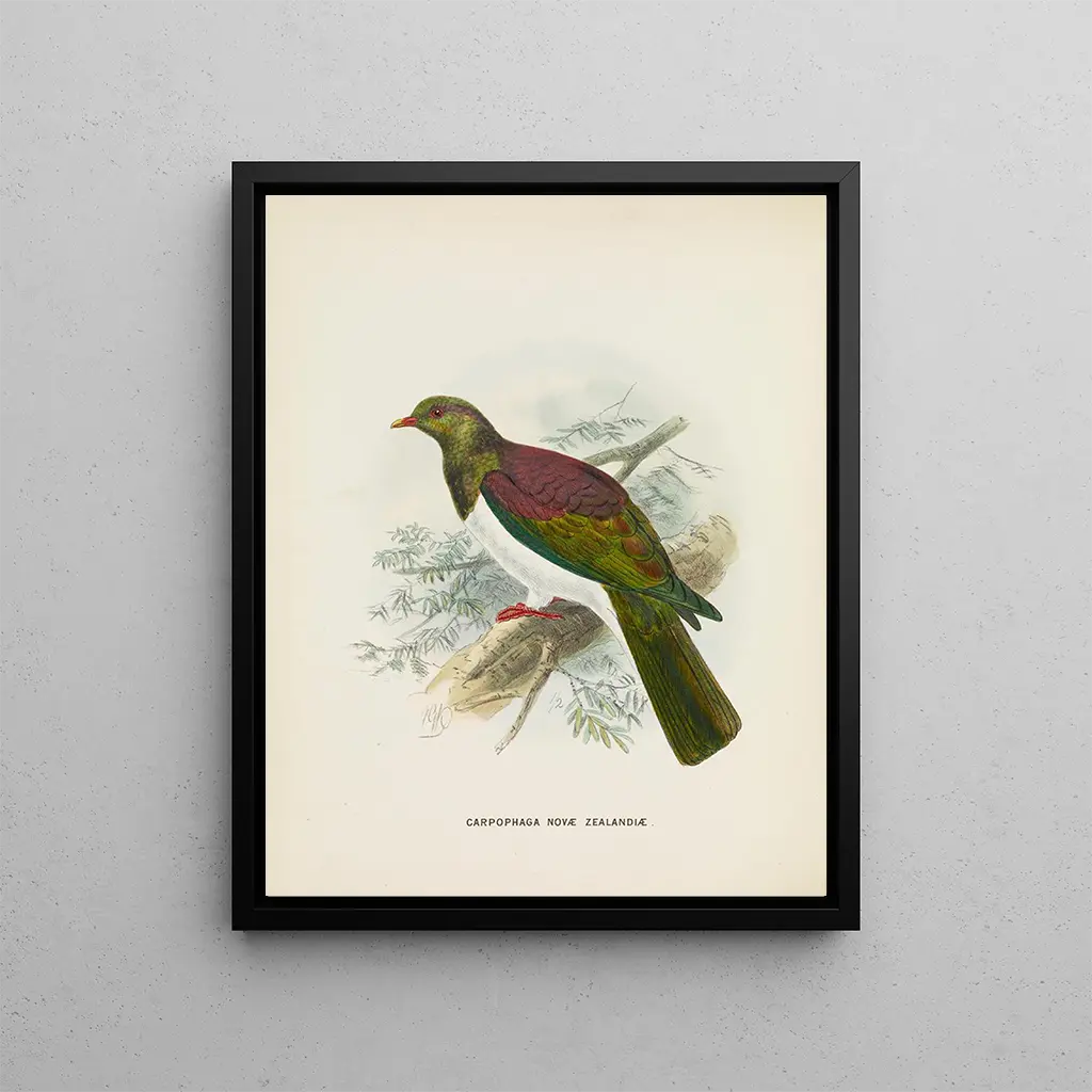 Reproducción artística de Carpophaga de Nueva Zelanda por John Gerrard Keulemans, perfecta para decorar tu hogar con un toque de naturaleza y elegancia. Disponible en diferentes tamaños y acabados de alta calidad para complementar cualquier espacio.