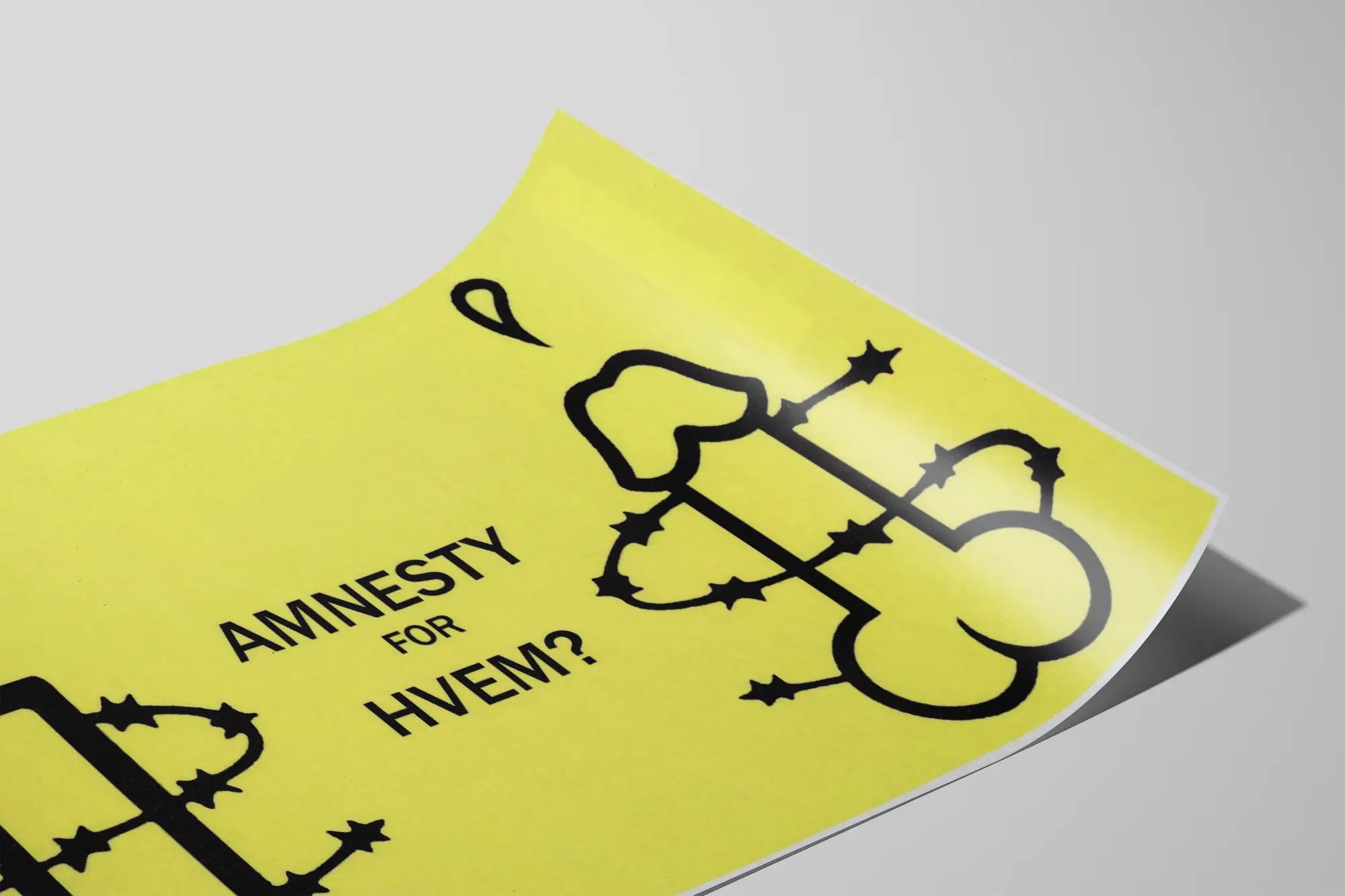 Póster Amnesty For Hvem - Decoración mural comprometida sobre fondo amarillo
