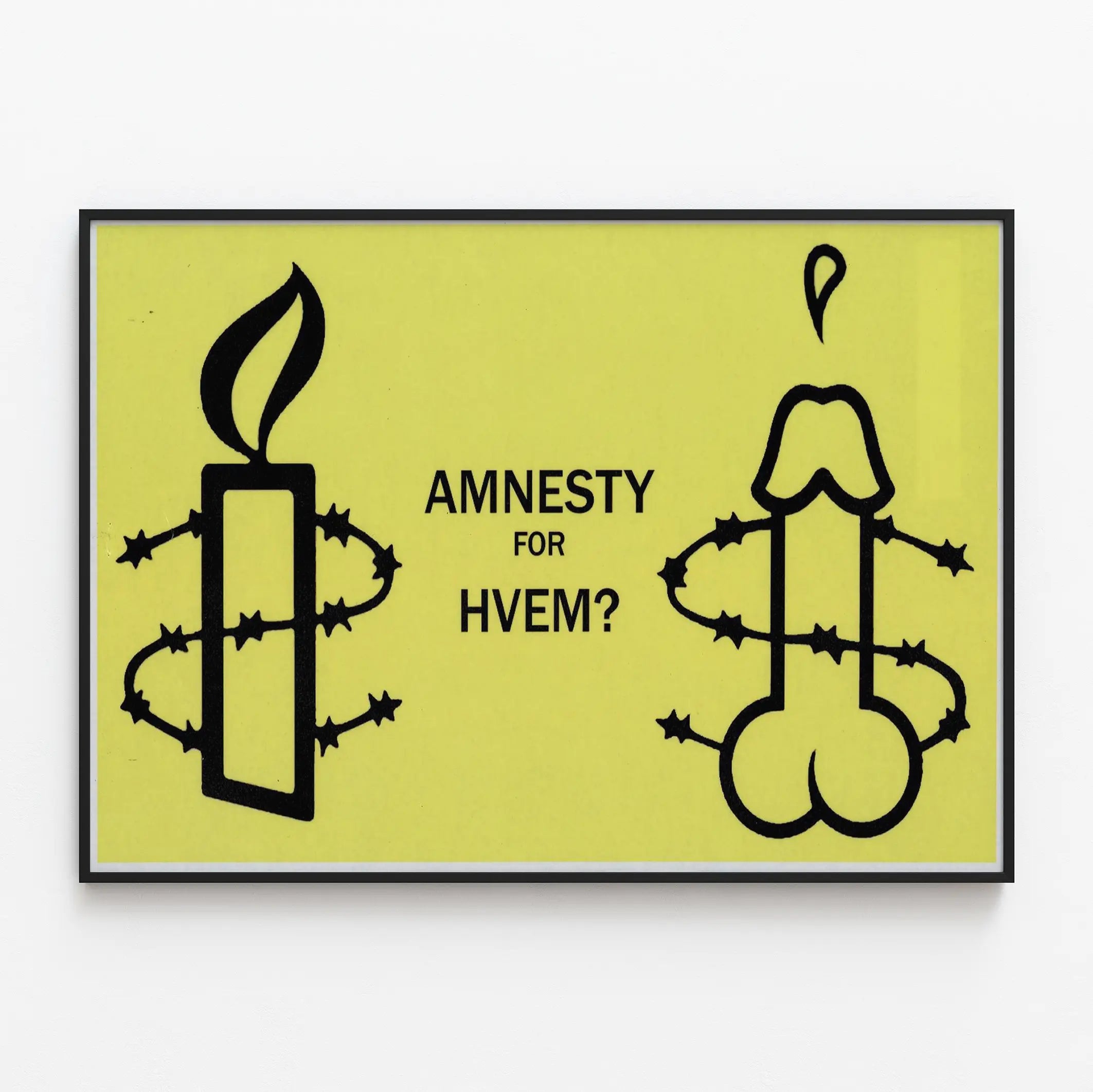 Invertir en este cartel "Amnesty For Hvem" es escoger un objeto decorativo que no pase desapercibido, cargado de una simbología fuerte, para una decoración mural a la vez original y que fomente el debate.