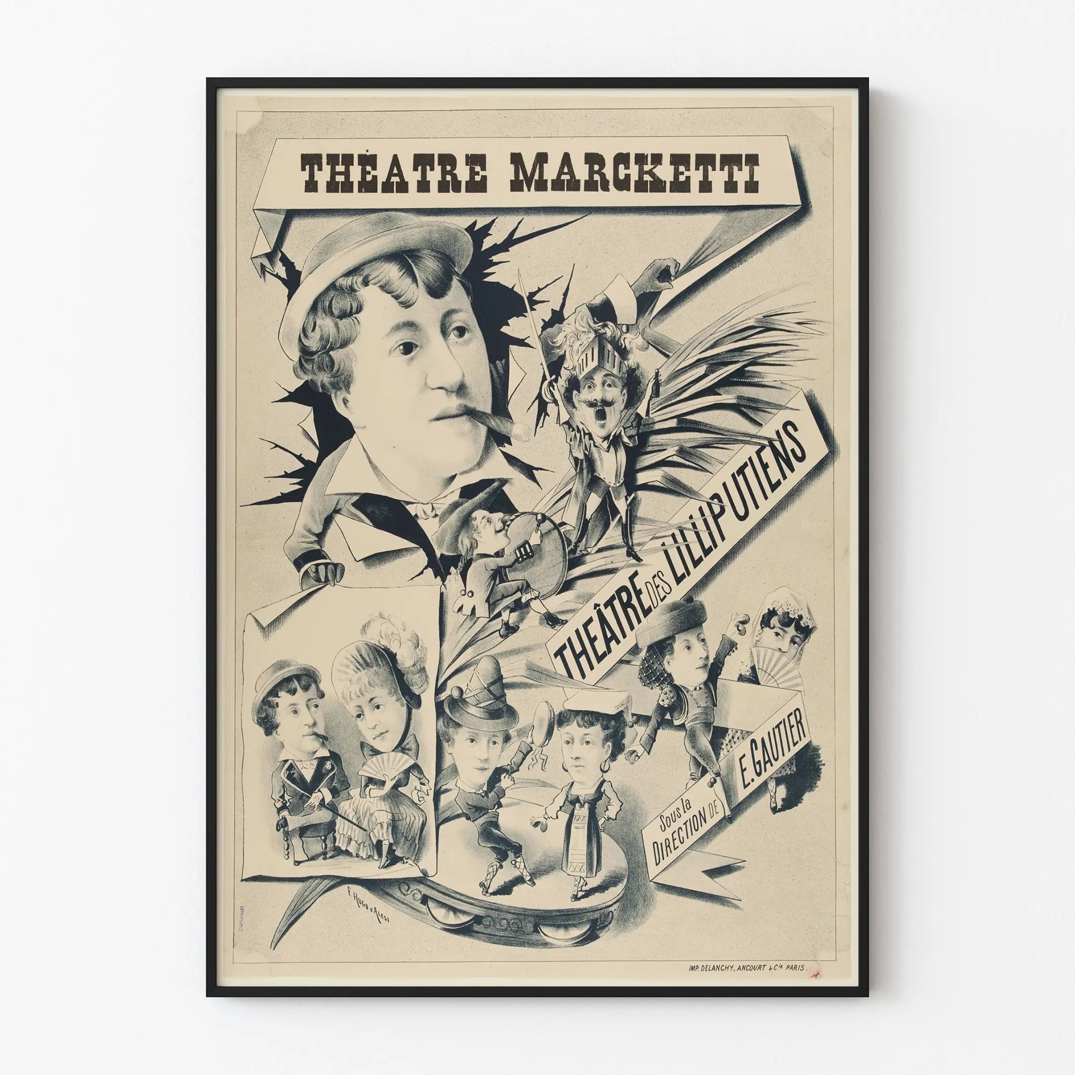 Póster antiguo Teatro Marcketti - Teatro de los Lilliputienses bajo la dirección de E. Gautier