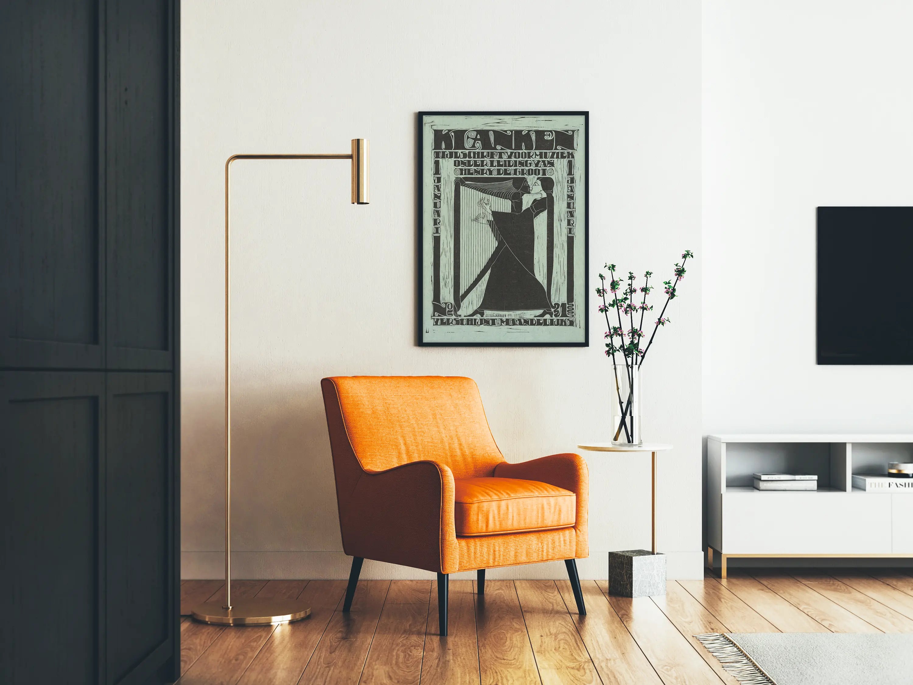 Descubra este cartel artístico con estilo Art Déco, perfecto para una decoración mural excepcional. Este póster ilustra una pareja estilizada en blanco y negro, donde los personajes parecen unidos en un abrazo tierno y elegante, simbolizando la unión y la armonía. La composición integra una arpa con cuerdas delicadamente dibujadas, evocando un universo musical y poético. El conjunto está enmarcado por caracteres tipográficos muy gráficos, típicos del diseño de principios del siglo XX, que añaden un toque vintage y sofisticado a esta decoración mural. Este cuadro impreso sobre un fondo claro destaca por la maestría del trazo y un trabajo depurado que aportará un toque artístico y refinado a cualquier interior. Utilice este cartel para personalizar una sala, una oficina o una sala de música, aportando un acento tanto cultural como estético. Este tipo de cartel, inspirado en antiguas revistas culturales, combina arte y tipografía de época, rindiendo homenaje a la música y a la poesía visual. La presencia de la arpa, instrumento noble y delicado, refuerza el tema musical y romántico de esta ilustración única, en blanco y negro, fácil de integrar en un estilo decorativo moderno o clásico. Consienta en adquirir una pieza que cuenta una historia entre forma, sonido y emoción, ideal para los amantes del arte gráfico y de la decoración mural original.