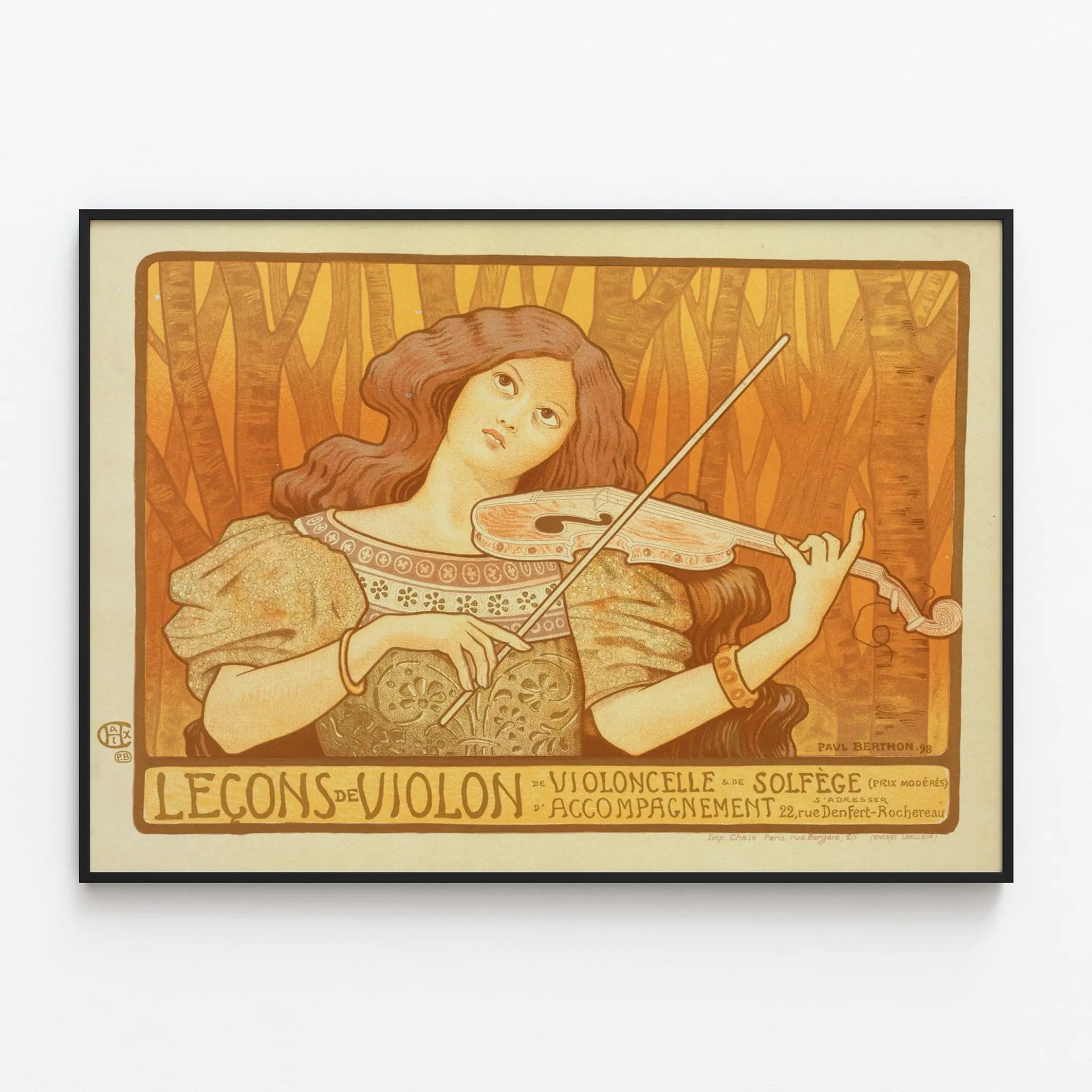 Póster Art Nouveau - Lecciones de Violín Paul Berthon