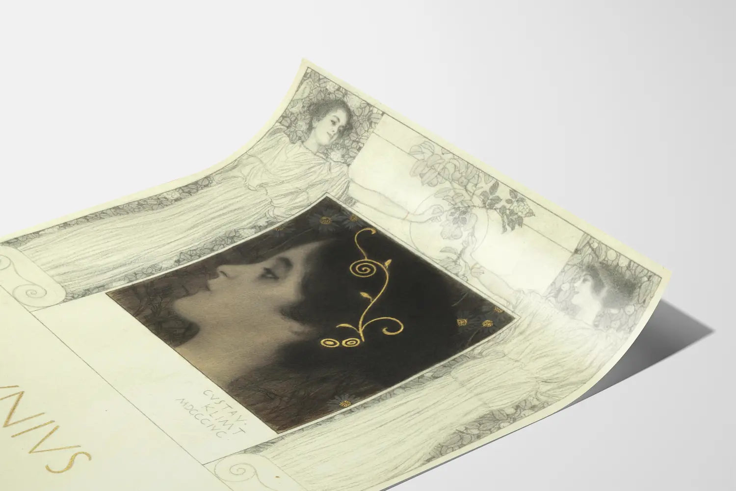 Esta impresión artística decorativa ofrece una calidad visual notable que respeta los rasgos originales de la obra, resaltando la armonía entre las figuras femeninas y los ornamentos florales dorados. Este cartel mural se distingue por su aspecto tanto clásico como elegante, ideal para los amantes del arte y los entusiastas de la decoración interior que desean incorporar un elemento artístico fuerte y delicado.