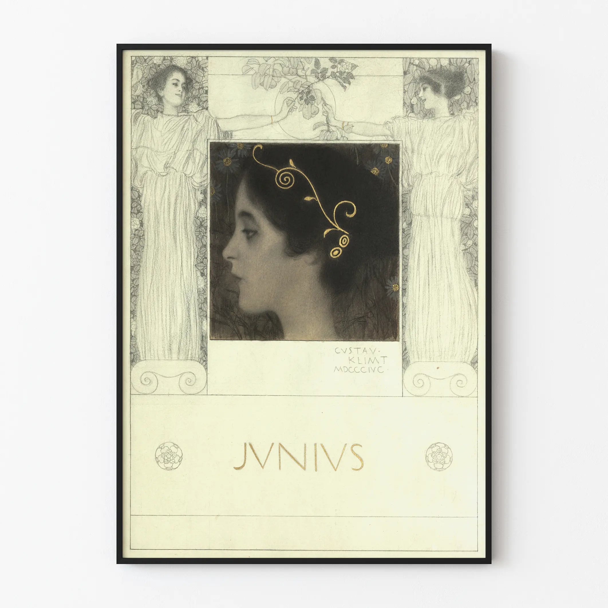 «Junius» presentado en este cartel también es un homenaje al trabajo de Gustav Klimt, conocido por sus composiciones ricas en simbolismo y su dominio de los detalles decorativos. Este cartel es una opción refinada para quienes desean integrar una pieza artística sin optar por un cuadro, manteniendo un estilo sofisticado.
