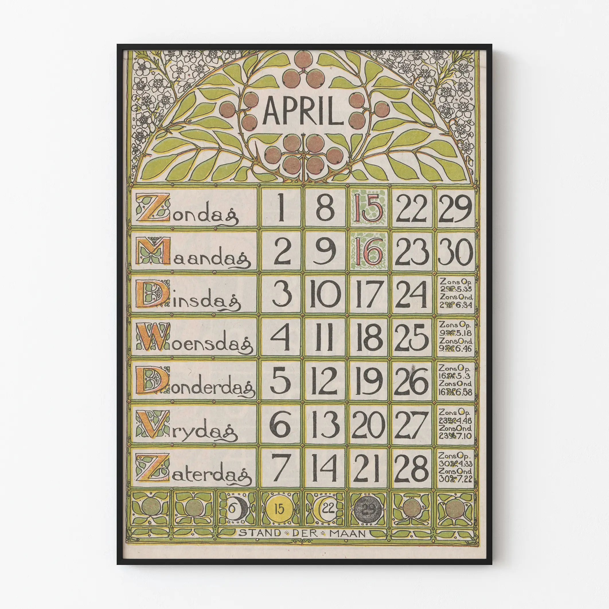 Póster Calendario Abril 1900 Estilo Art Nouveau