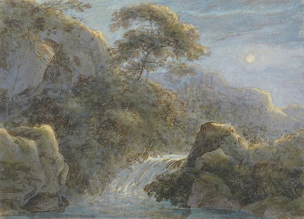 Cascada en las montañas a la luz de la luna - Franz Kobell