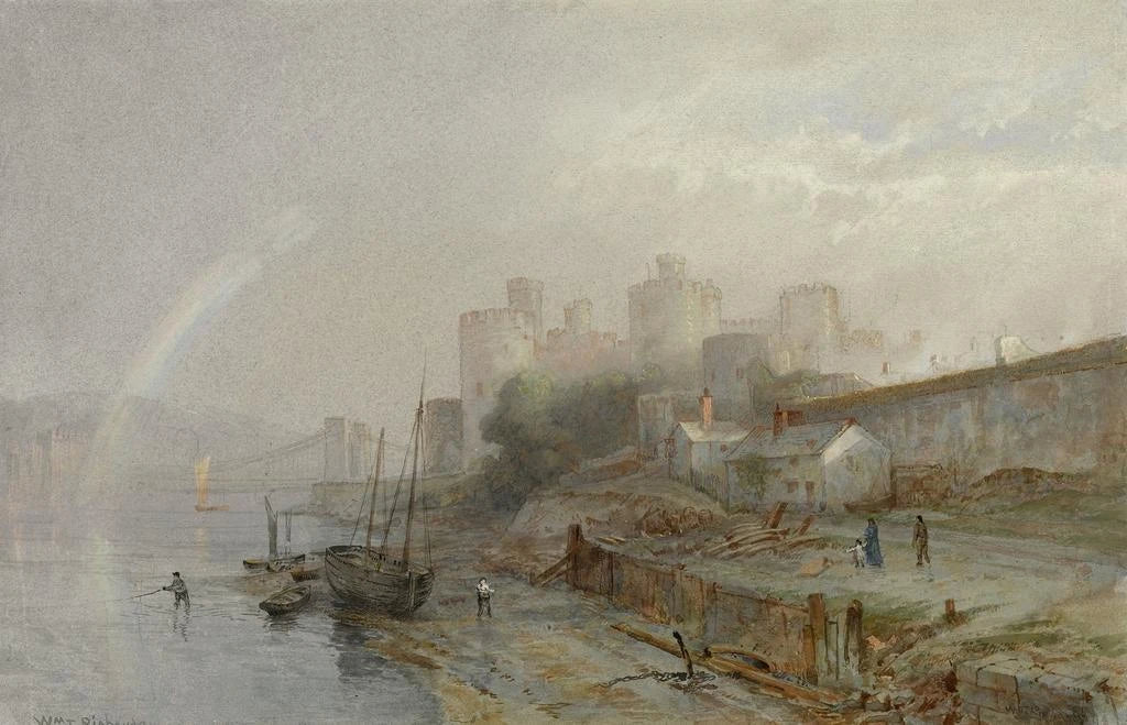 El cuadro Château de Conway, obra de William Trost Richards, evoca una atmósfera de serenidad y grandeza. La composición destaca el castillo medieval, majestuosamente erigido sobre un promontorio, rodeado de una naturaleza exuberante. Los colores son ricos y variados, yendo desde los verdes brillantes de las colinas hasta las tonalidades azules del cielo. La técnica de la acuarela, dominada por Richards, permite capturar la luz y las sombras, creando un ambiente casi onírico. Este cuadro invita a la contemplación, transportando al espectador en un viaje visual a través del tiempo y el espacio.