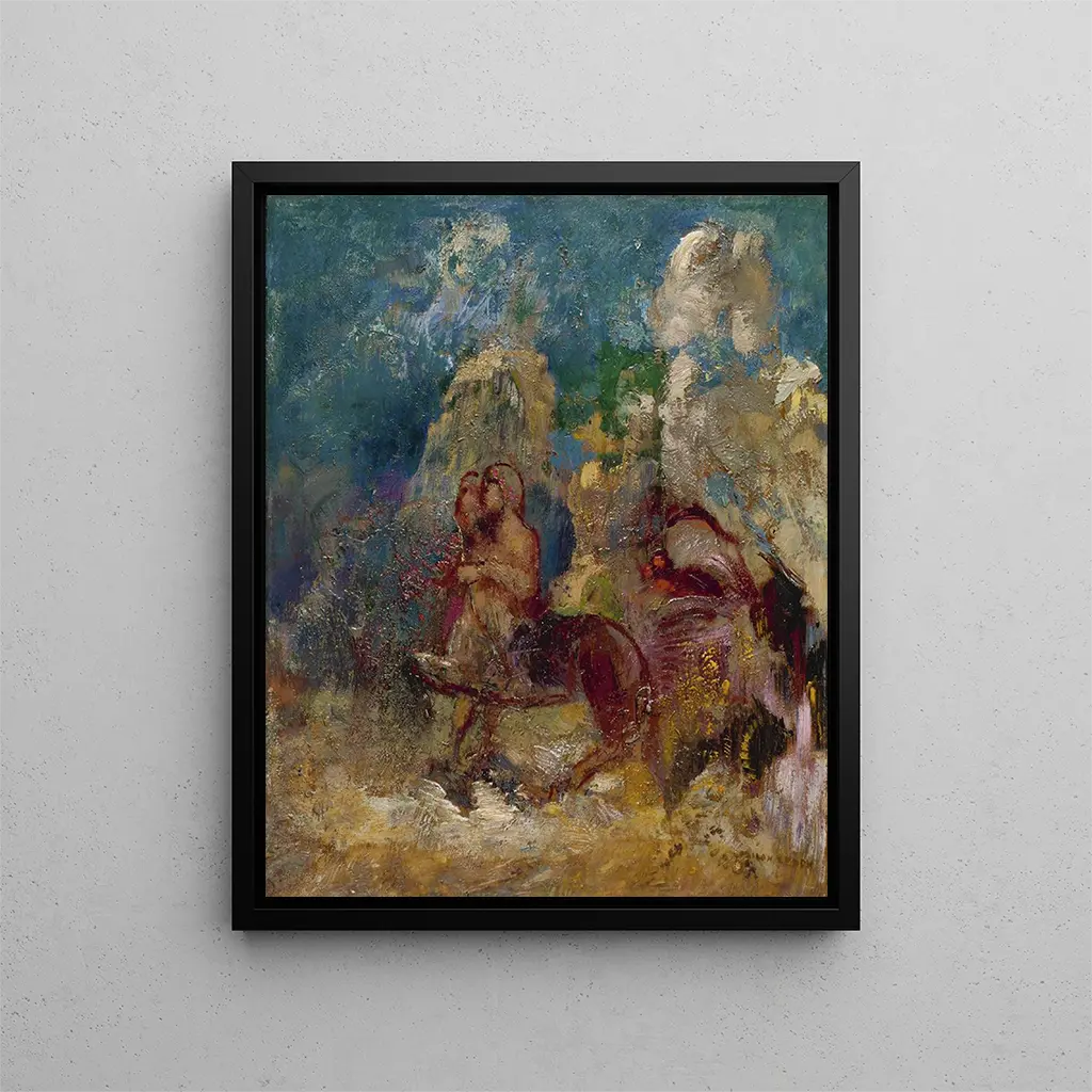 Reproducción artística de la obra Centaures del artista Odilon Redon. Esta impresión en lienzo o papel captura la esencia surrealista y onírica de la obra original, perfecta para decorar su hogar u oficina con un toque de misterio y fantasía.