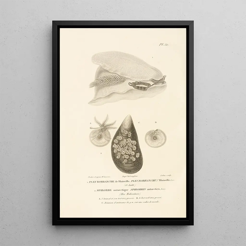 La impresión artística de Centurie zoologique Pl51 nos sumerge en un universo rico y colorido, donde cada detalle es cuidadosamente observado. Los tonos vibrantes de los animales, combinados con fondos delicados, crean una atmósfera a la vez viva y poética. La técnica de grabado utilizada por Lesson permite representar cada espécimen con una precisión notable, revelando la belleza de la fauna. Esta obra invita a una contemplación atenta, donde se puede apreciar la diversidad y la complejidad de la naturaleza, mientras se deja llevar por la magia del arte.