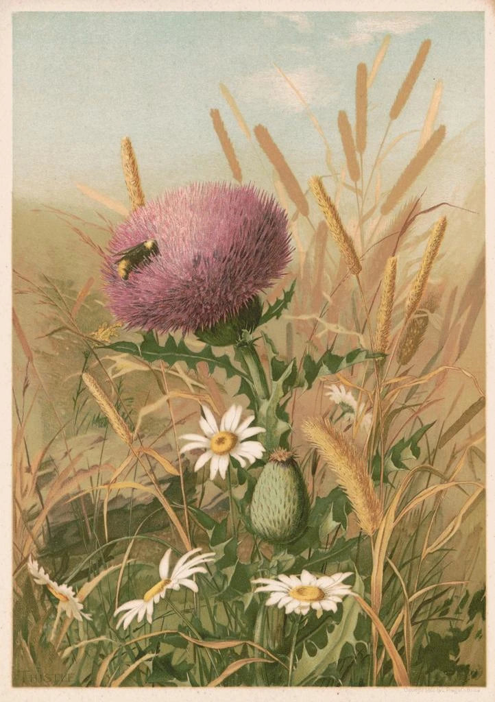 El Chardon, obra cautivadora de Louis Prang Co, celebra la belleza bruta de la flora salvaje. Este cuadro, con sus tonos vibrantes de violeta y verde, evoca la fuerza y la resiliencia de esta planta emblemática. La técnica de la acuarela, utilizada con delicadeza, permite captar los detalles delicados de los pétalos y las hojas, creando una atmósfera a la vez salvaje y poética. Cada pincelada parece capturar la luz del sol, iluminando el chardon y colocándolo en el centro de un paisaje natural lleno de emociones.