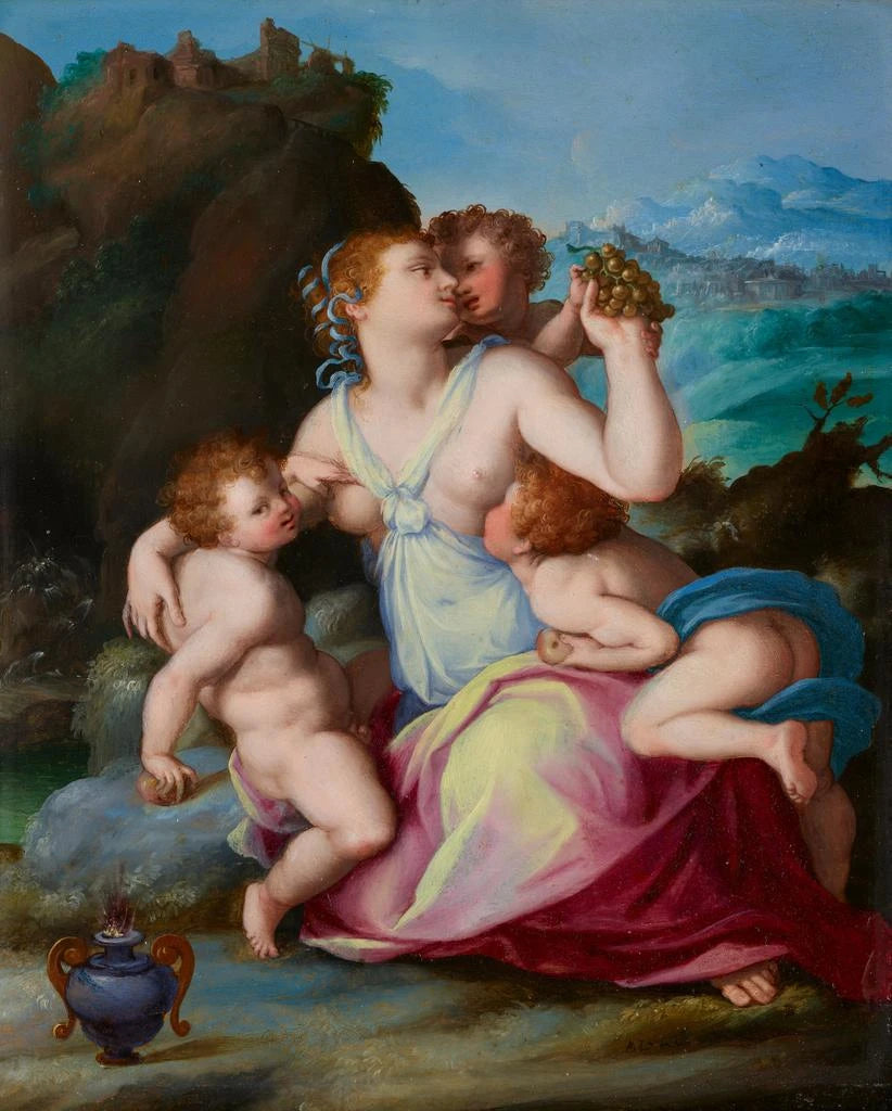 Alessandro Allori, nacido en Florencia, es considerado uno de los artistas principales del Renacimiento tardío. Alumno de Miguel Ángel, su estilo se nutre de las enseñanzas de los grandes maestros, desarrollando a la vez una identidad propia. Allori es reconocido por su capacidad para fusionar diferentes influencias artísticas, desde el manierismo hasta elementos más barrocos, lo que le permite crear obras de gran riqueza visual y emocional. "Charité" es un ejemplo perfecto de su talento, ilustrando cómo logra transmitir valores morales a través del arte. Al abordar temas universales como el amor y la compasión, Allori supo influir en numerosos artistas de su tiempo y en generaciones futuras, dejando una huella indeleble en el panorama artístico europeo.