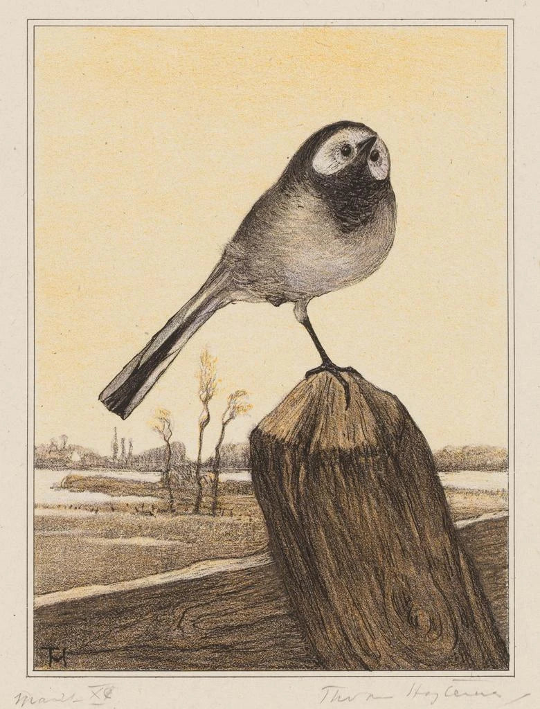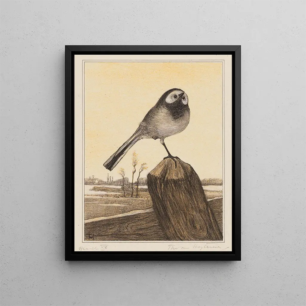 Reproducción artística de la obra Bergeronnette sur un poteau del artista Theo van Hoytema. Perfecta para decorar tu hogar u oficina con un toque de elegancia y naturaleza. Disponible en varios tamaños y acabados para adaptarse a tu espacio.