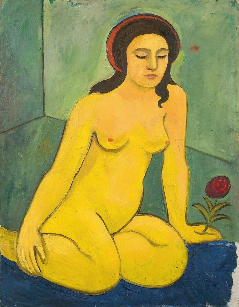 Impresión artística | Niña desnuda con una flor roja - August Macke