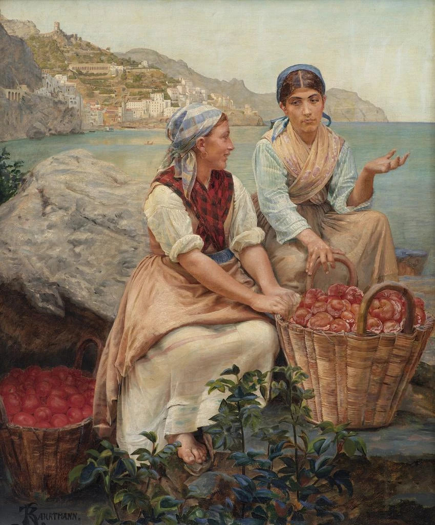 Chicas italianas con tomates en cestas - Kristian Zahrtmann