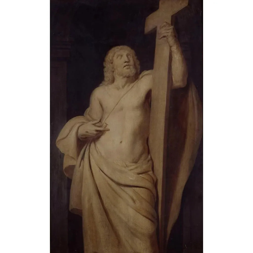 La impresión artística "Christ" de Cornelis de Vos ilustra una representación conmovedora del Salvador, capturando tanto su sufrimiento como su majestad. Los tonos cálidos y los contrastes de luz crean una atmósfera de devoción, mientras que los detalles minuciosos de los pliegues y las expresiones faciales refuerzan el impacto emocional de la obra. La composición, centrada en la figura de Cristo, atrae inmediatamente la mirada e invita a la contemplación. Cada elemento del lienzo parece cargado de significado, testimoniando la maestría técnica del artista y su compromiso con el tema sagrado.