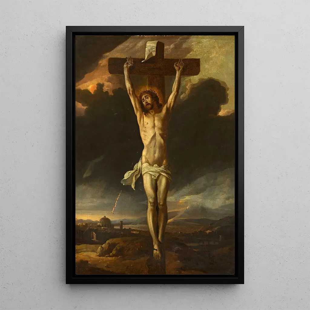 Christ en croix : una obra de devoción y de sufrimiento La impresión artística de "Christ en croix" de Anton Goubau nos sumerge en una atmósfera de recogimiento y contemplación. La composición destaca la figura central de Cristo, crucificado, rodeado de una luz suave que realza los detalles de su cuerpo martirizado. Los colores oscuros y terrosos, típicos del arte barroco, crean un contraste impactante con la luminosidad divina que emana de la escena. La técnica de Goubau, combinando hábilmente el claroscuro, refuerza la intensidad emocional de la obra, invitando al espectador a reflexionar sobre el sufrimiento y la redención. Anton Goubau : un maestro del barroco flamenco Anton Goubau, pintor flamenco del siglo XVII, es reconocido por su habilidad para capturar escenas religiosas impregnadas de profundidad espiritual. Influenciado por los maestros de la pintura barroca, supo desarrollar un estilo personal que combina realismo y expresividad. Activo en Amberes, Goubau también estuvo en contacto con artistas contemporáneos, lo que enriqueció su enfoque artístico. Su obra "Christ en croix" es emblemática de este período, donde la religión y la emoción humana ocupaban un lugar central en el arte, testimoniando la importancia de la fe en la sociedad de su tiempo. Una adquisición decorativa con múltiples ventajas Optar por la impresión artística de "Christ en croix" de Anton Goubau, es elegir una pieza decorativa que aporta un toque de espiritualidad y elegancia a su interior. Ya sea en una sala de estar, una oficina o un dormitorio, este lienzo se integra armoniosamente en diversos estilos de decoración, desde el clásico hasta el contemporáneo. Su calidad de impresión y fidelidad a los detalles originales garantizan un atractivo estético indiscutible, haciendo de esta obra una elección ideal para quienes desean enriquecer su espacio vital mientras evocan temas profundos y universales.
