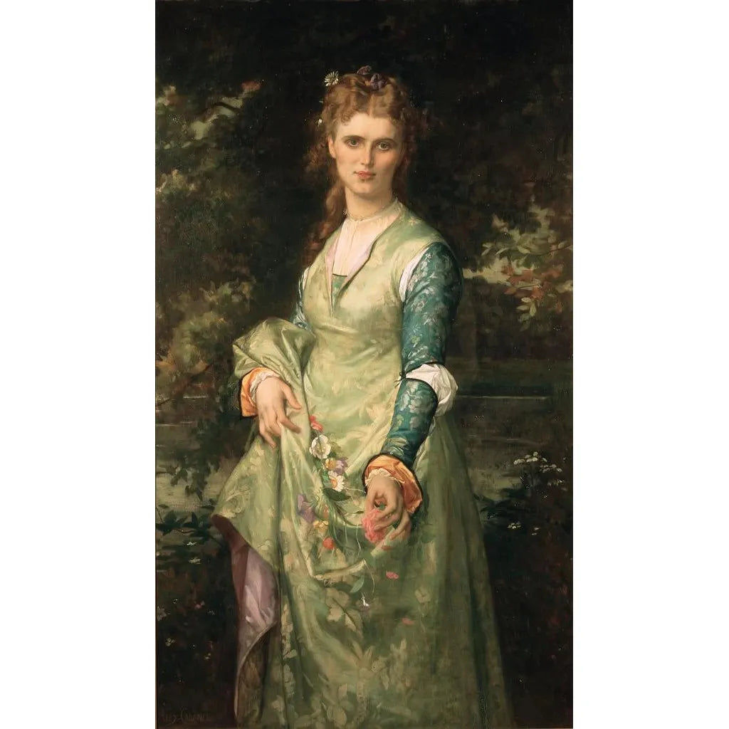 En esta obra, Alexandre Cabanel captura la esencia de Christina Nilsson, famosa cantante de ópera, representándola en el papel de Ofelia. La tela está impregnada de una atmósfera romántica, donde la suavidad de los colores pastel se mezcla con matices más oscuros, evocando tanto la belleza como la melancolía del personaje. La técnica de Cabanel, con sus detalles minuciosos y su uso magistral de la luz, da vida a la emoción que emana de esta figura femenina. Cada pincelada parece contar una historia, transportando al espectador a un mundo de ensueño y pasión.